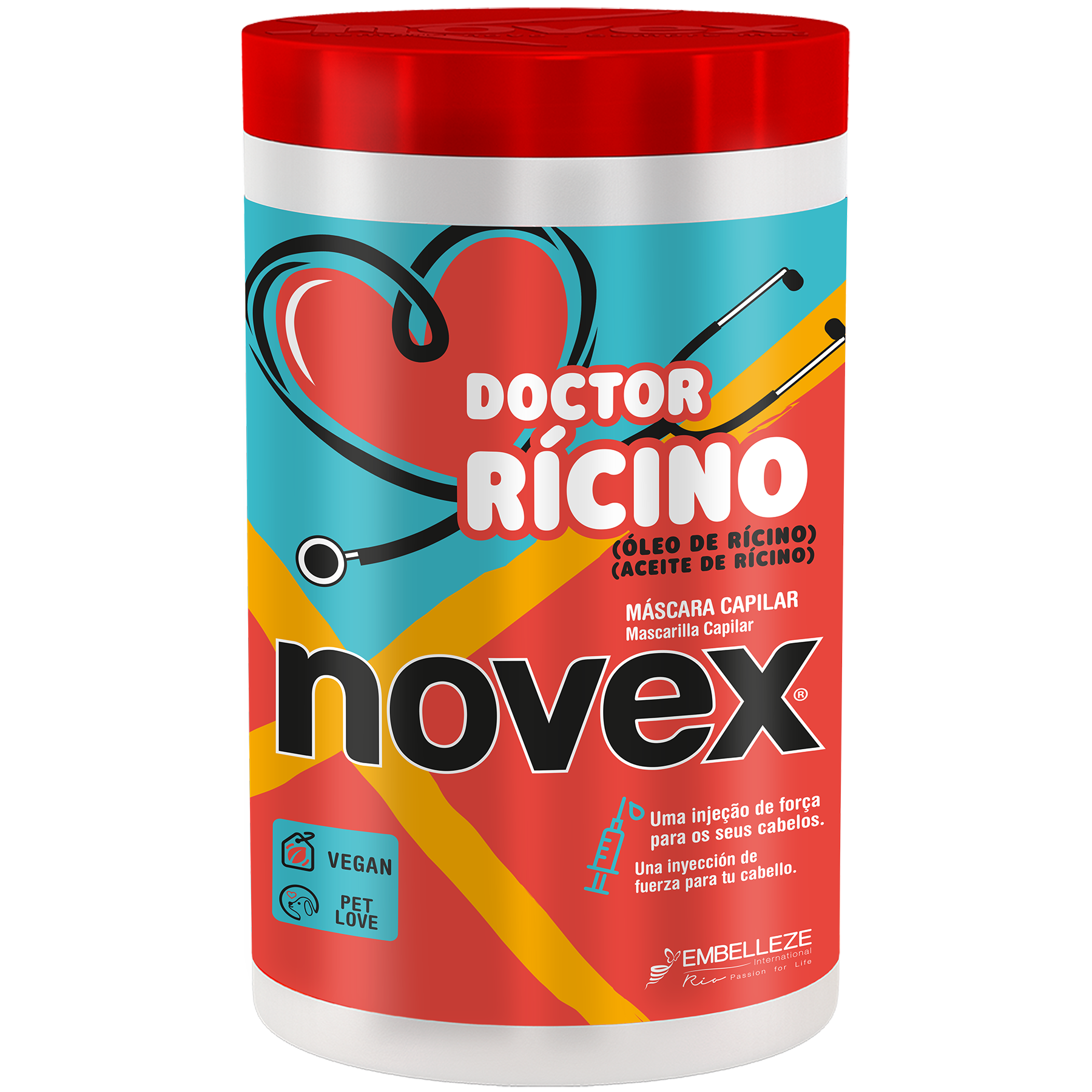 A Máscara 1kg Novex Doctor Rícino é vegan e tem o selo Pet Love, por não ser testado em animais. Com o rícino extraído de uma planta chamada mamona, este produto tem outras grandes vantagens: é rico em ácidos gordos, vitamina E e contém os ómegas 6 e 9. Por isso, esta máscara é perfeita para a etapa de Nutrição do Cronograma Capilar, e ajuda a combater a quebra, a formação de pontas espigadas e o frizz, tornando o cabelo mais forte. Indicada para todos os tipos de cabelo, é ideal para cabelos fracos e quebradiços